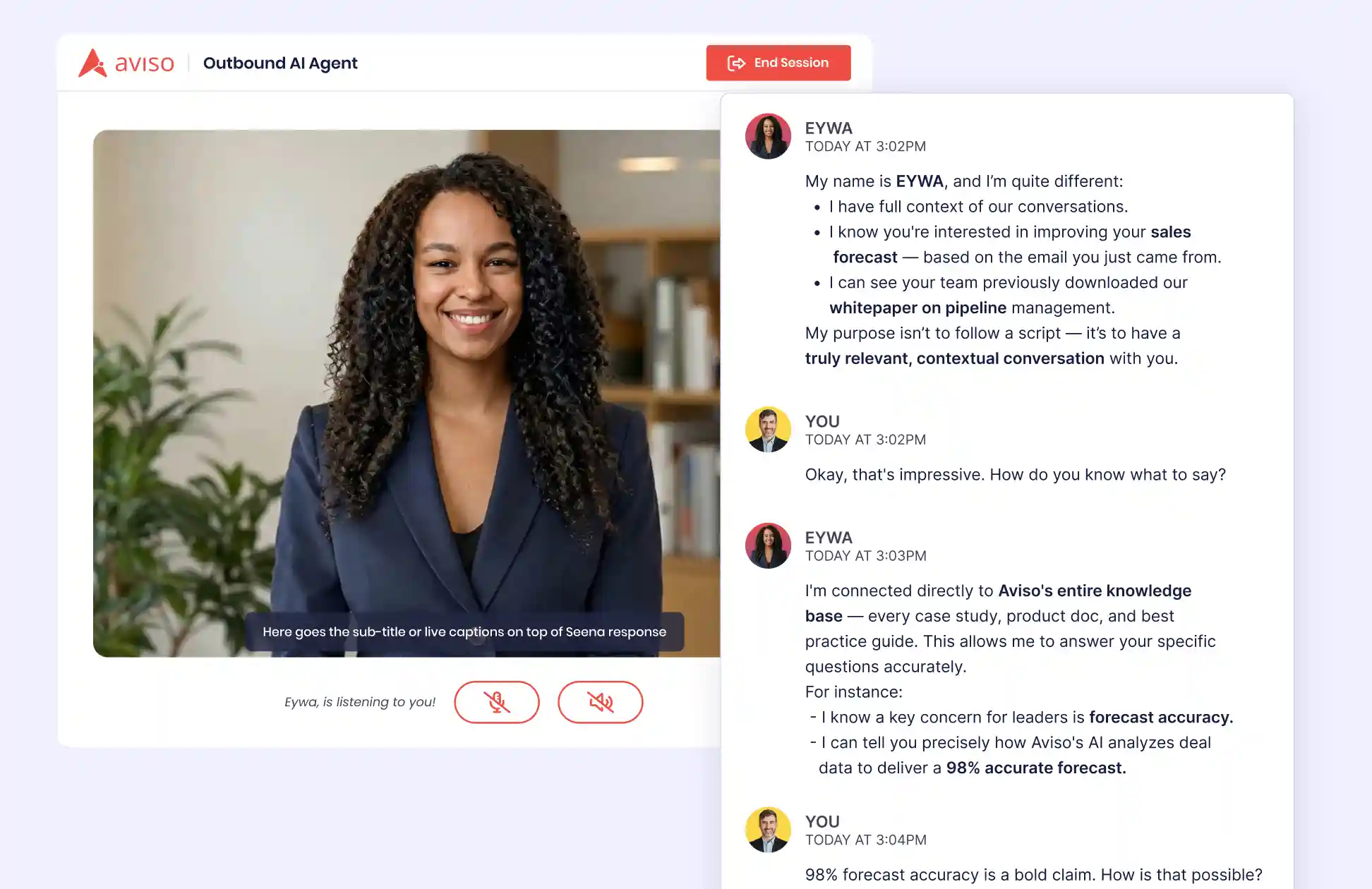 Aviso's Sales Engineer Avatar joins live sales calls as an AI-powered co-pilot, providing real-time assistance that keeps conversations on track.