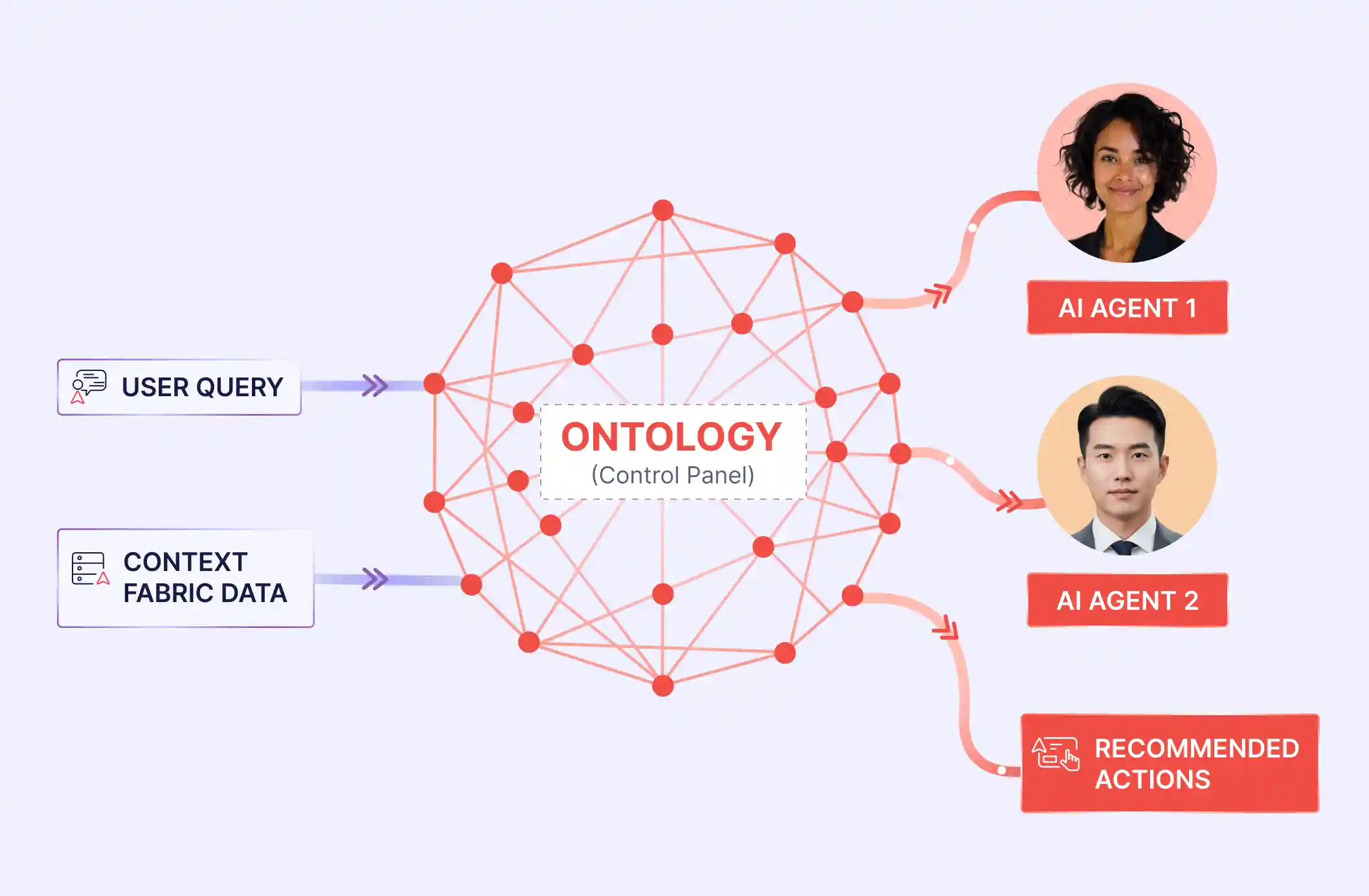 Once signals are stabilized within the context fabric, the system applies an ontology layer. This is where raw activity is translated into business meaning.