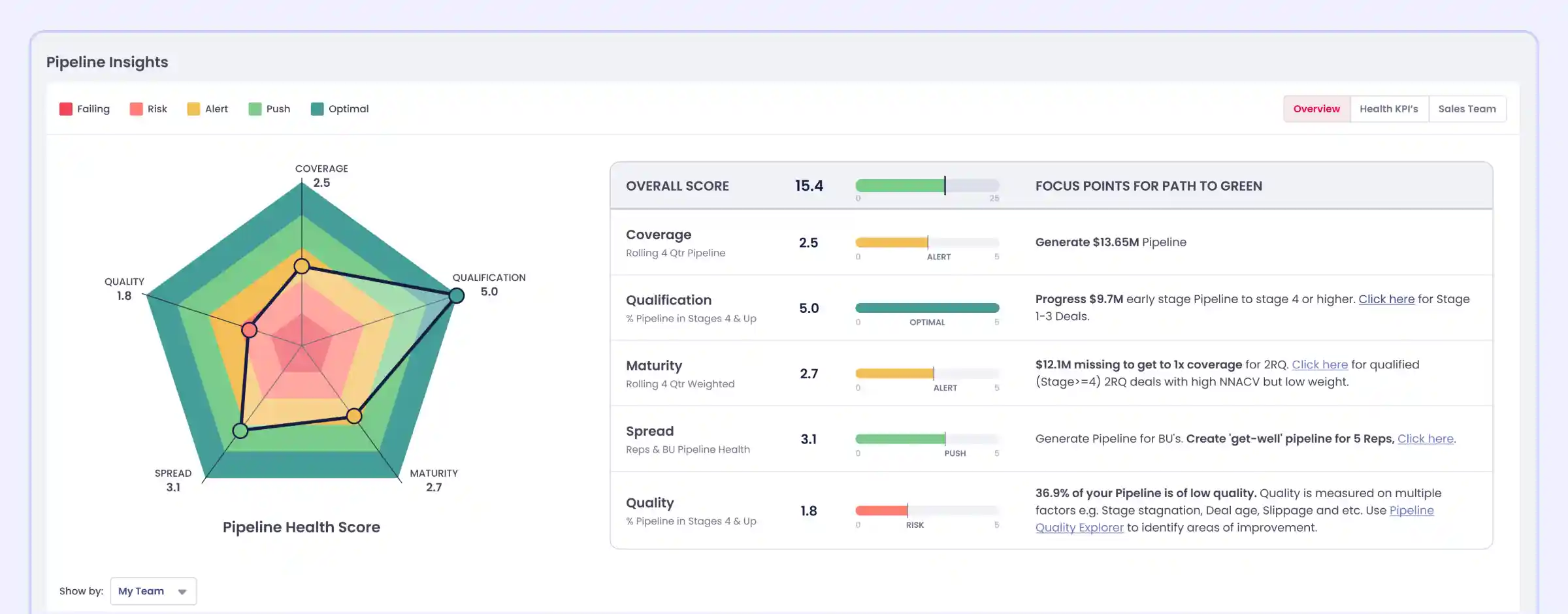 1. Pentagon Score: Pipeline health is now scored across Coverage, Qualification, Maturity, Spread, and Quality