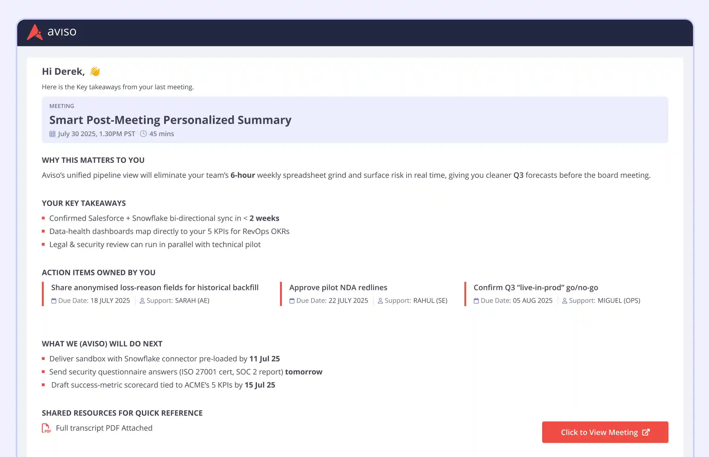Where to find it: Log into app.aviso.com > Conversation Intelligence > Call Summary > select any call