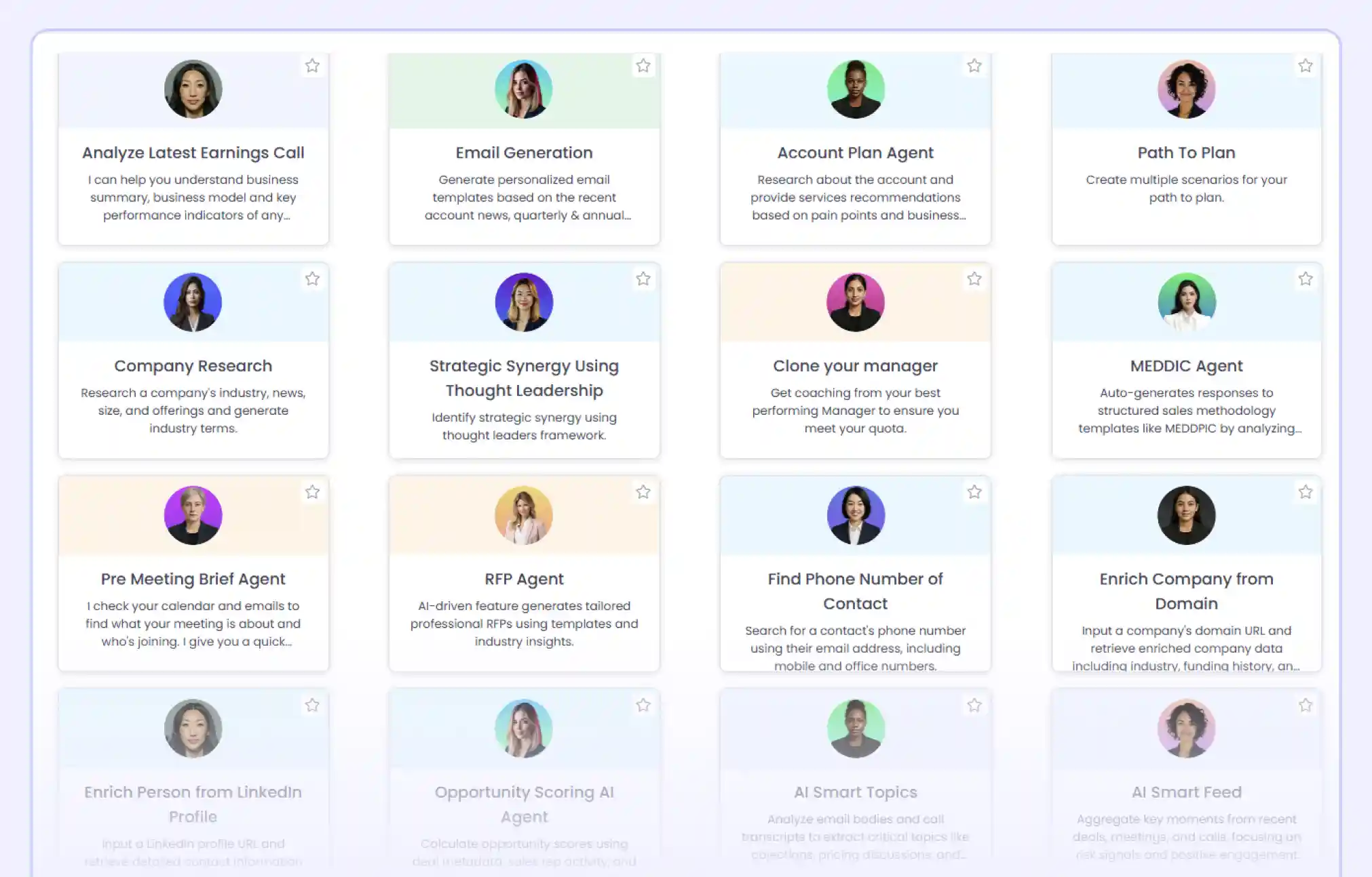 Every agent is scoped to a revenue execution point where manual effort creates deal risk. Eight new agents were added this quarter.