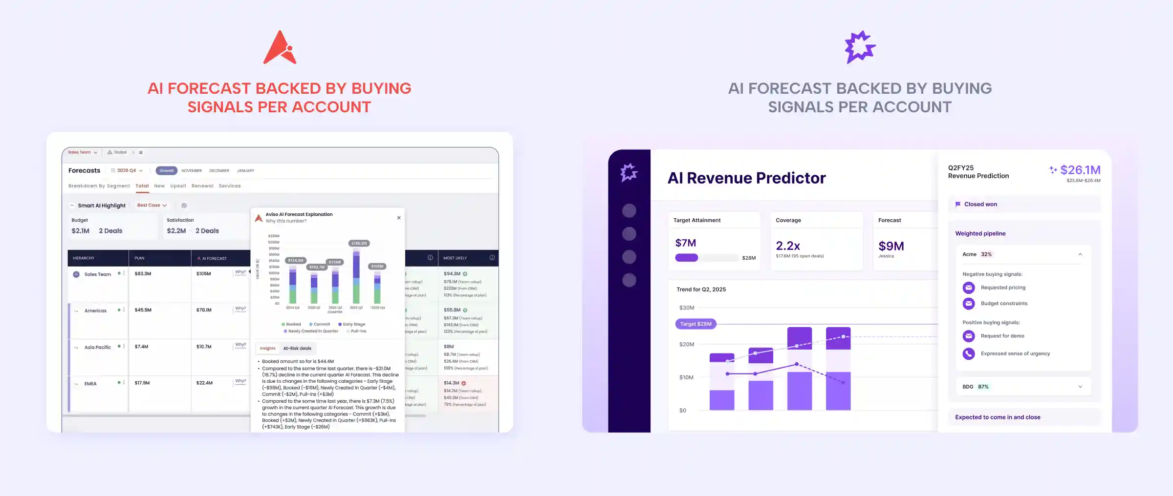 Gong built forecasting as a bolt-on module to a conversation intelligence platform. Aviso was purpose-built for AI-driven revenue execution from day one, with forecasting, pipeline management, deal intelligence, Activity Intelligence, and Relationship Intelligence included in the core platform.