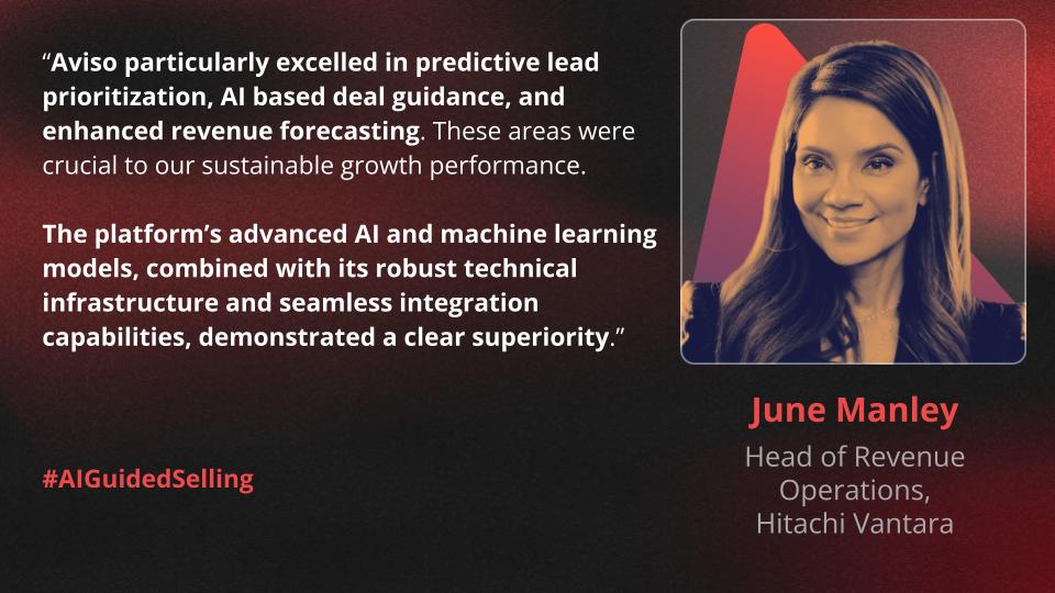 Accuracy: Aviso 98%+ vs Gong 95%. At Week 4, Aviso's AI identified 68% of winning deals; human rep commit caught 15%