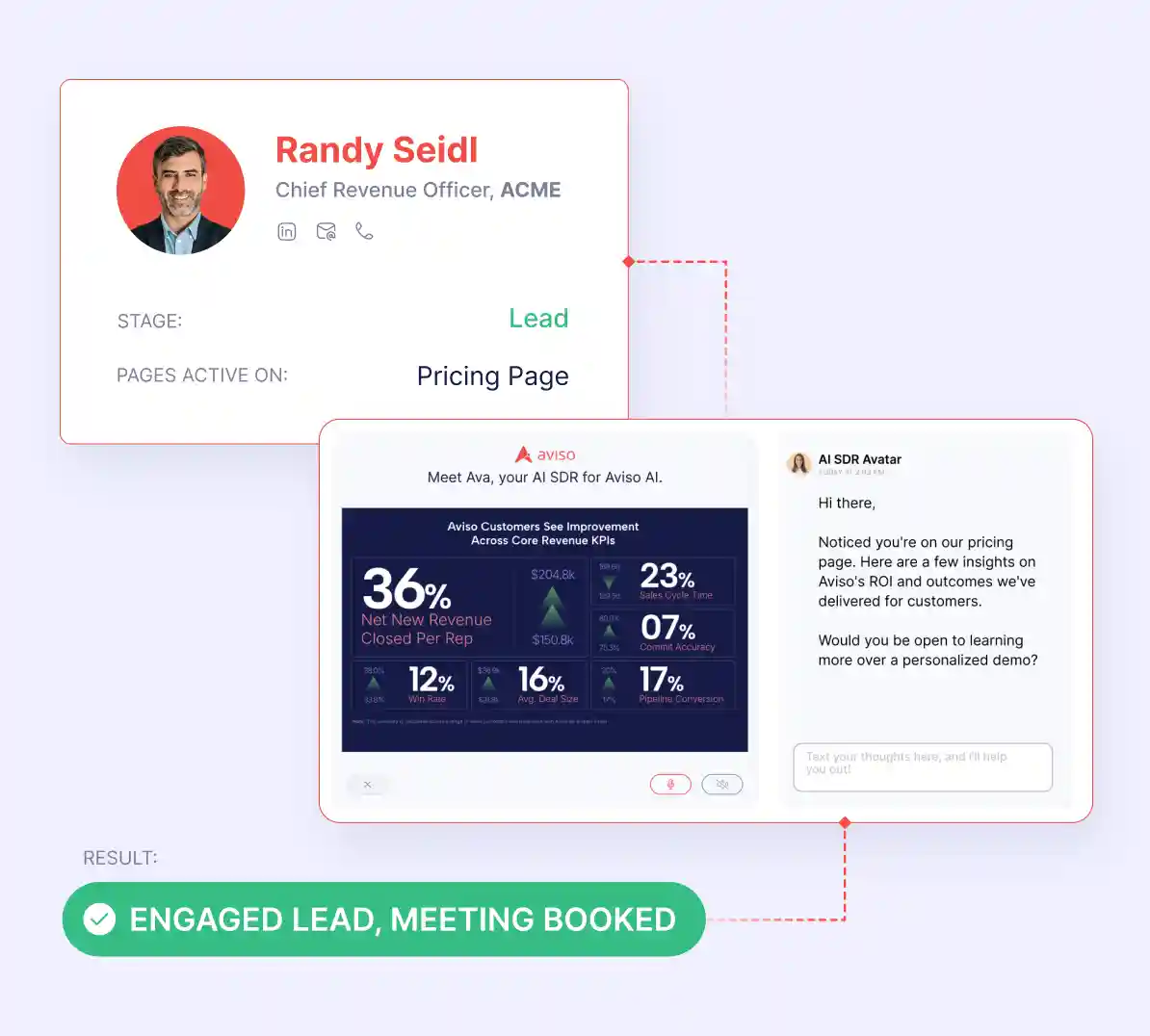 Aviso’s AI SDR Avatar eliminates this delay and acts as an autonomous extension of your sales team by: