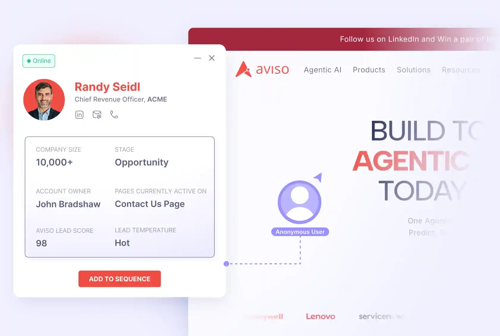 The difference between a missed high-intent lead and a qualified opportunity often comes down to speed-to-lead. By unifying anonymous website visitor identification, lead enrichment, scoring, and sales engagement into a single platform, Aviso ensures that your sales team turns every visitor into high-value pipeline.