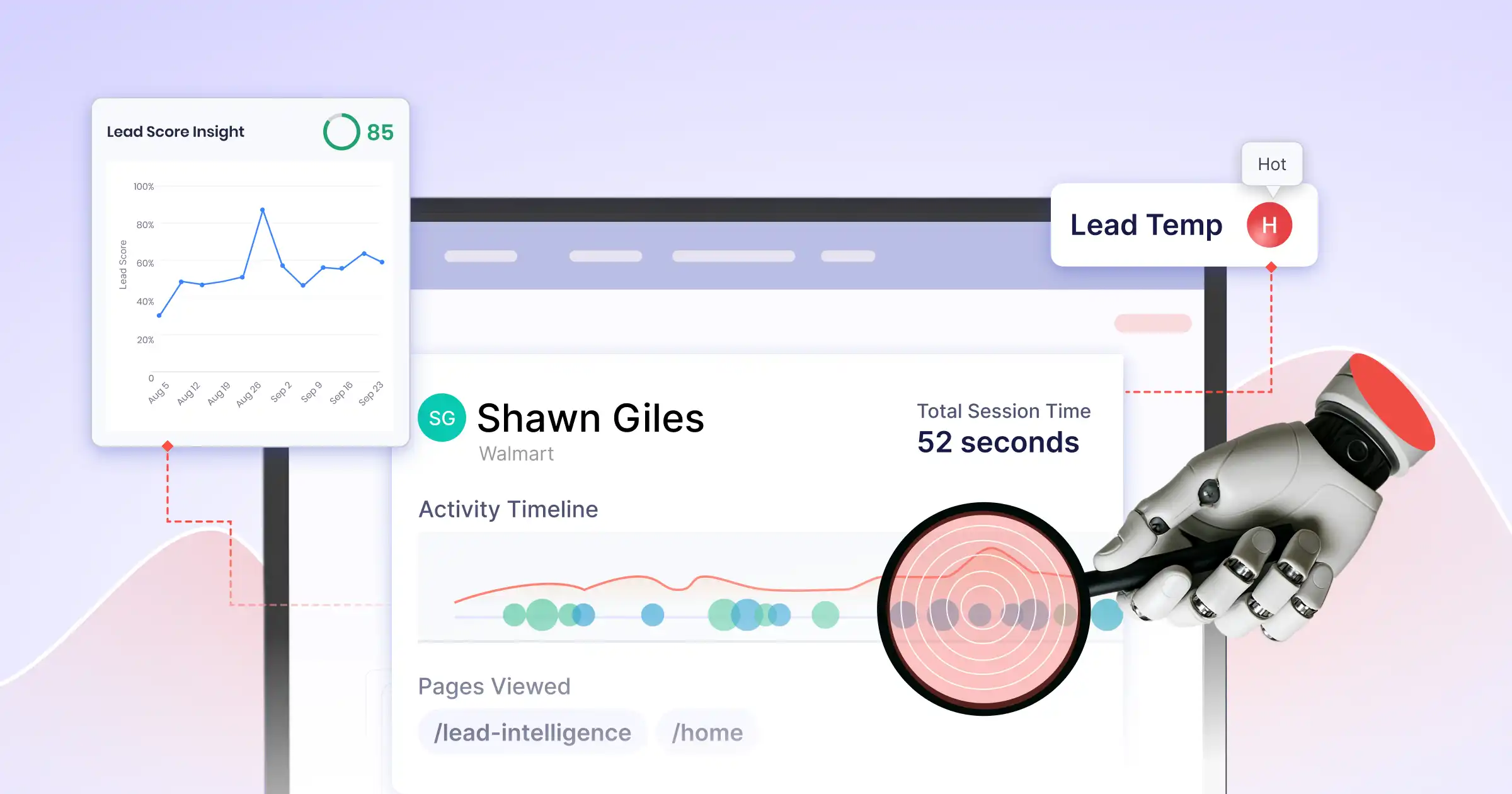 For example, a visitor who checked out the pricing page twice, with a high Intent Score (98) driven by meetings and recent email clicks, is flagged for immediate prioritization. A "warm" visitor who is browsing product pages is automatically routed to a nurture sequence.