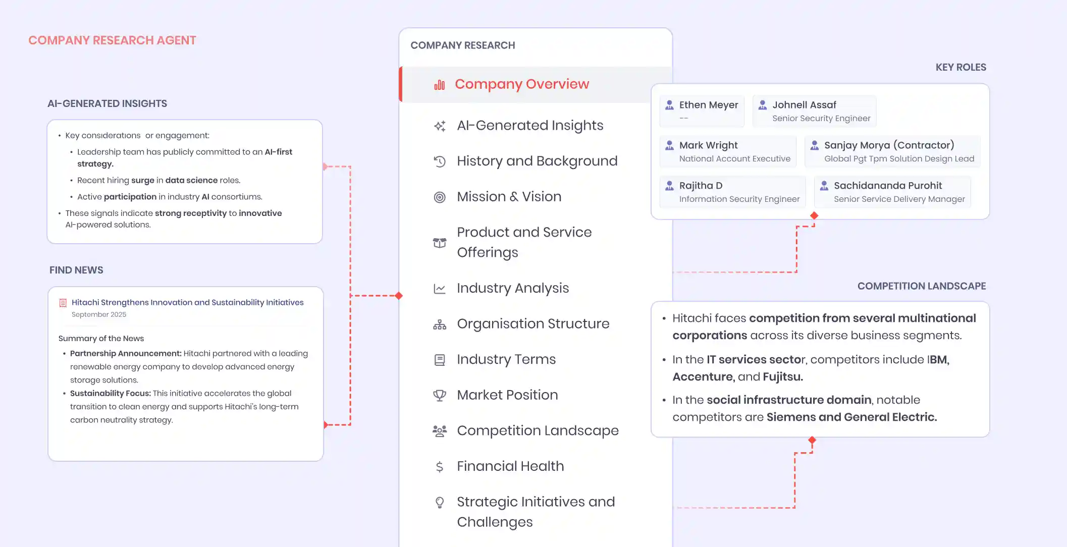 Account & Company Research Agents: Account Research and Company Research summarize market position, recent news, and competitive shifts—giving sellers an instant, executive-level briefing on the account’s current reality.