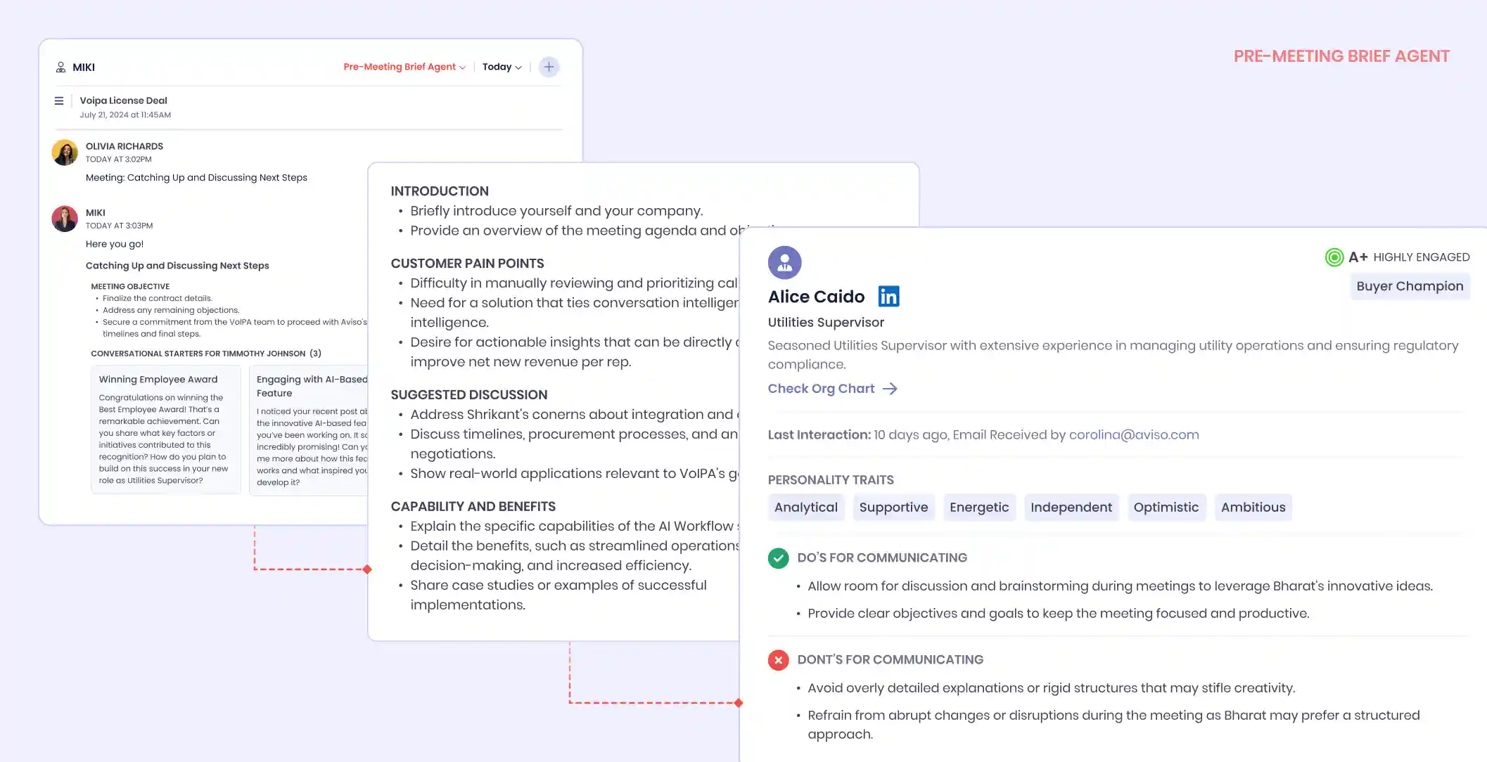 Aviso embeds intelligence directly into seller workflows so AEs can make better decisions while deals are still live: