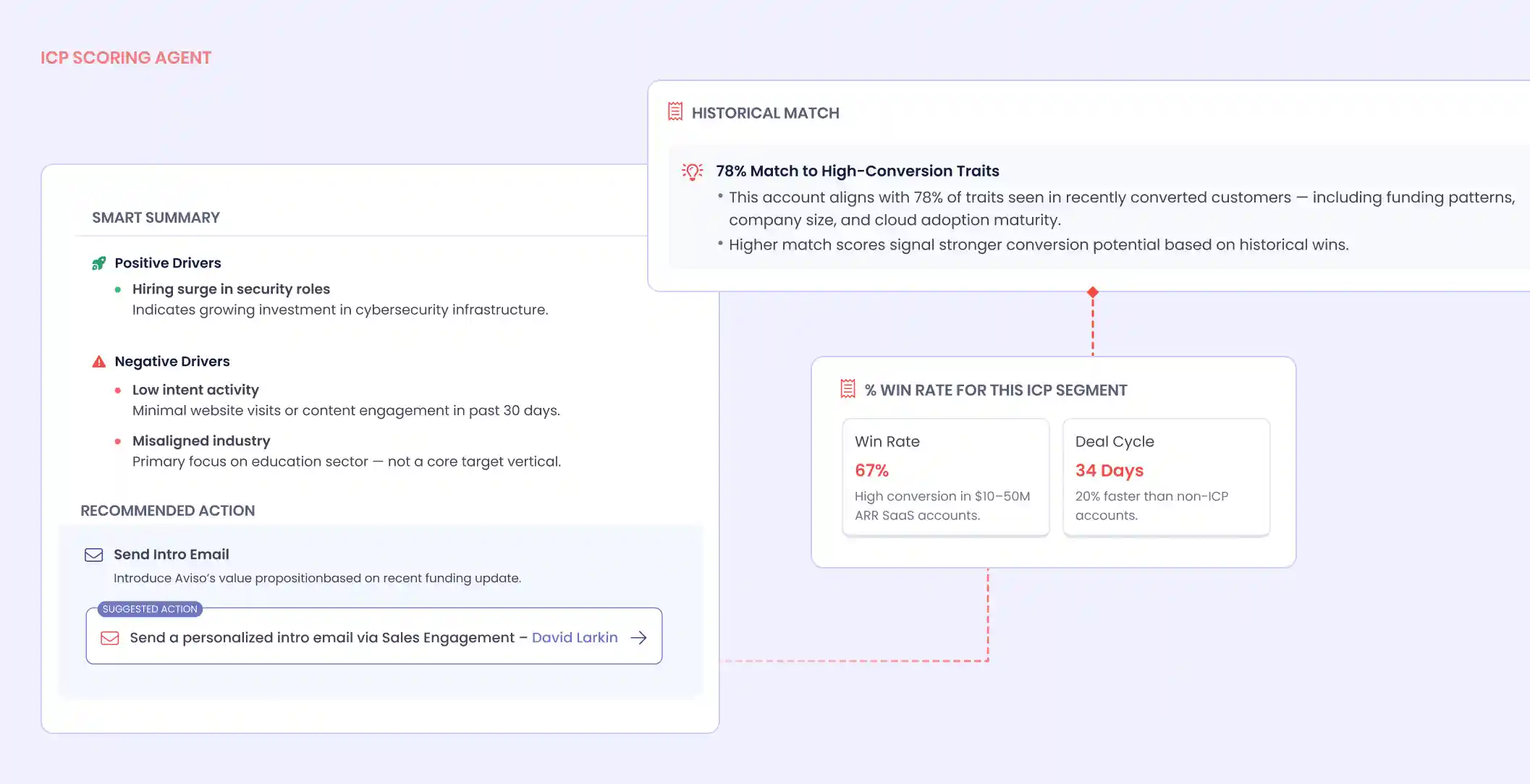 ICP Scoring Agent: Automatically evaluates every account against your Ideal Customer Profile to ensure your budget and SDR energy are focused only on high-fit targets.