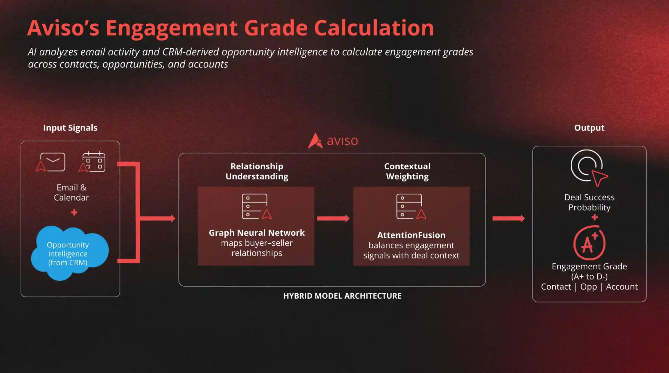Rather than assigning grades based on activity thresholds, Aviso uses an outcome-driven approach that connects engagement directly to deal success.