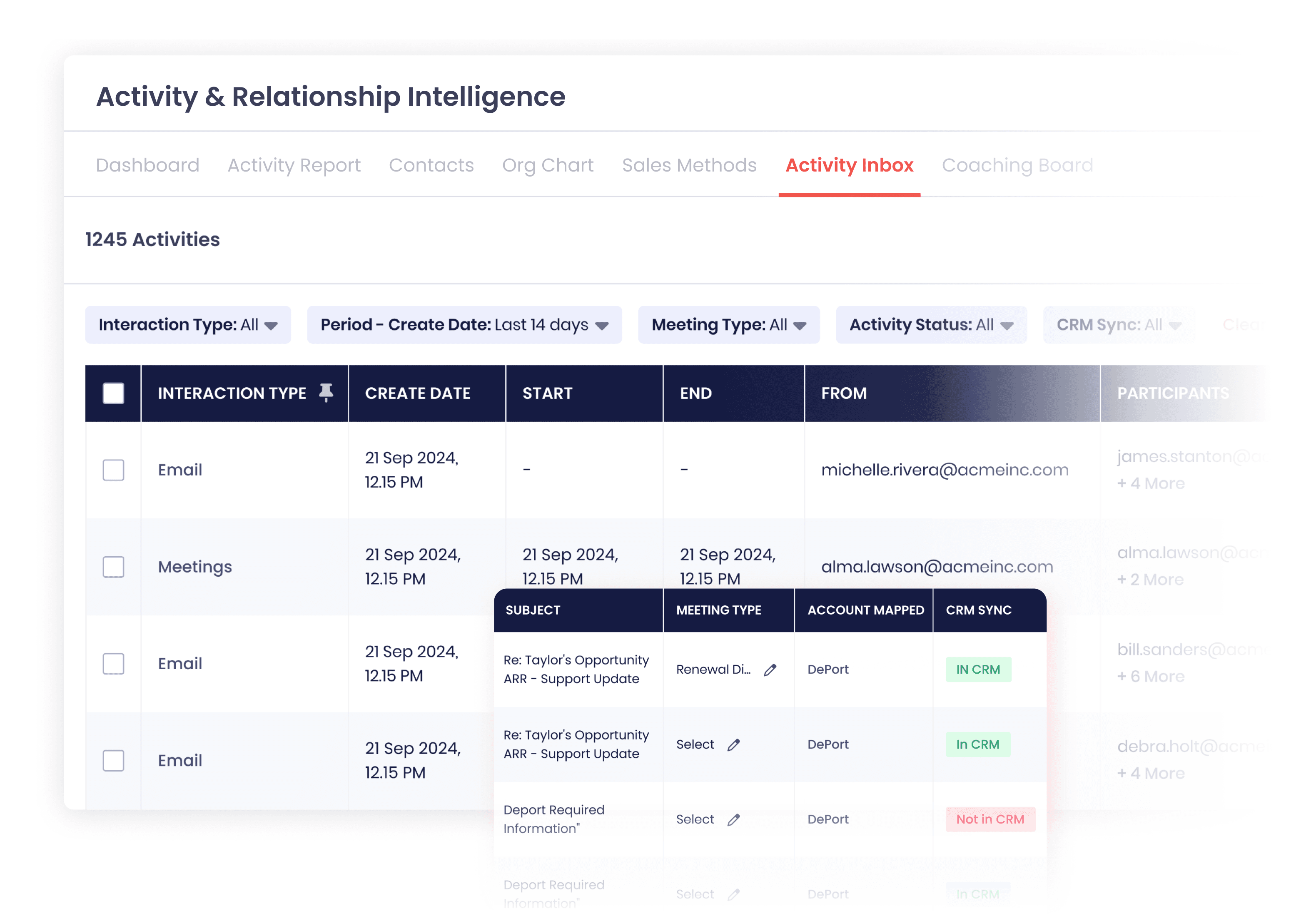 From contact-level to account-level to opportunity-level and domain-level, Aviso automates activity mapping and ensures interactions are mapped to the right parent-child entity within account hierarchies