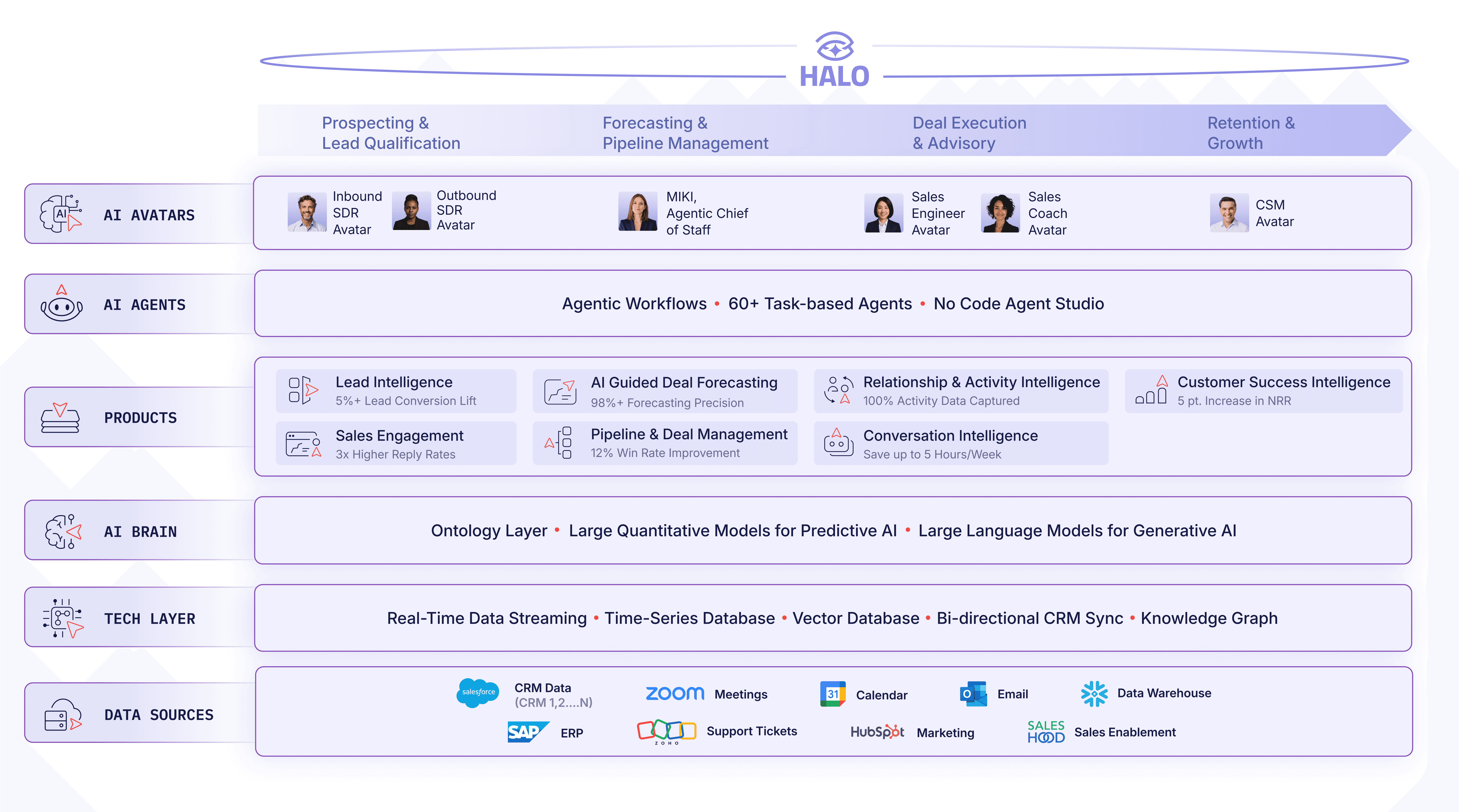 Aviso gives you a library of 50+ AI Agents, 30+ Agentic Workflows, and a team of 6+ AI Avatars that act as your dream revenue partners to drive rep productivity and top-line revenue outcomes.