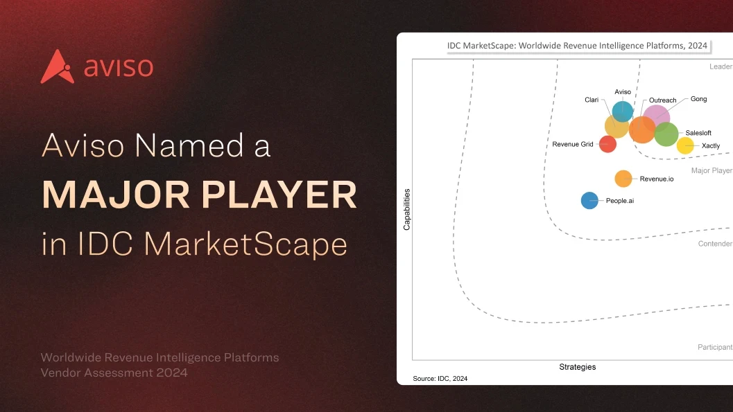 “Aviso's suite of robust features and capabilities exceeds expectations. From predictive analytics and forecasting tools to AI-driven lead scoring and deal health assessment, Aviso provides the tools to optimize sales performance, manage pipelines, and mitigate risks, allowing revenue teams to thrive in dynamic environments,” said Michelle Morgan, IDC analyst.